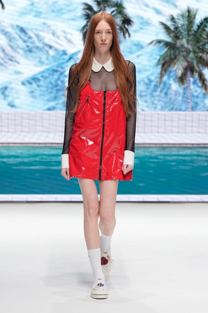 Τα looks του σημερινού show ήταν μία ξεχωριστή μίξη της σύγχρονης νεανικής γκαρνταρόμπας με αθλητικά jackets, loose denims, κολάν, printed πλεκτά σε στυλ πιτζάμας και φυσικά hoodies, τα οποία παντρεύτηκαν πολύ επιτυχημένα με granny style μοτίβα με μικρά λουλουδάκια, παλτό και καμπαρντίνες, vinyl 60s φορέματα και μαντήλια δεμένα γύρω από το κεφάλι σαν την εκλιπούσα βασίλισσα Ελισάβετ Β', που είχε κάνει το δικό της statement με το συγκεκριμένο στυλ. Ρομαντισμό και σουρεαλισμός σε ένα άκρως ενδιαφέρον μείγμα, που λειτούργησε άψογα και μας μετέφερε στις πιο όμορφες αναμνήσεις της ζωής μας. Αυτές που είναι γεμάτες παιδικότητα και αυθορμητισμό.