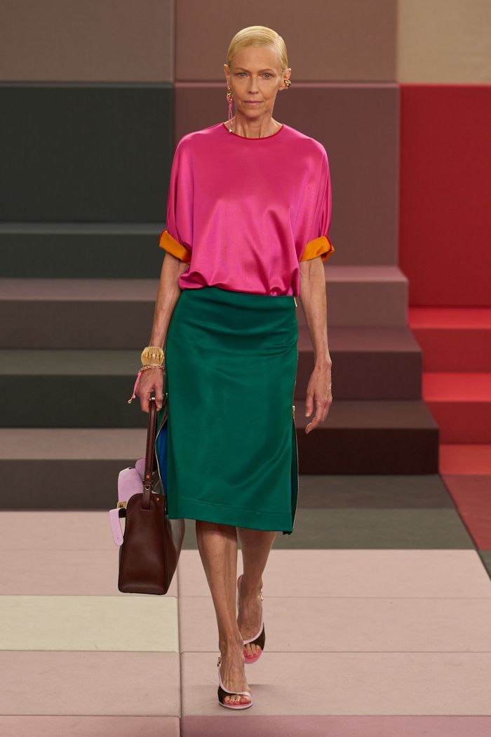 Ο οίκος Fendi, παρουσίασε μια συλλογή που απέδειξε πως τα έντονα χρώματα ήρθαν για να μείνουν και είναι πιο δυναμικά από ποτέ χωρίς να χάνουν τον εκλεπτυσμένο χαρακτήρα τους. Υπέροχα looks σε έντονο blush pink, συνδυασμένο με κόκκινο ή με πράσινο, κίτρινο, μαργαρίτες και ένα λαμπερό μπλε τιρκουάζ δημιούργησαν μια παλέτα που ισορροπεί ανάμεσα ζωηρότητα και την προσωπικότητα με ταυτότητα Fendi.