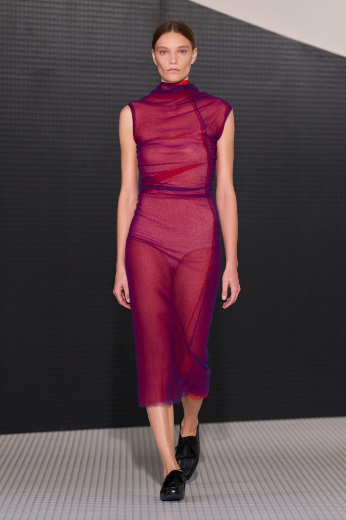Οι γραμμές ήταν, όπως πάντα, αρχιτεκτονικές και μινιμαλιστικές. Οι σιλουέτες παρέμειναν καθαρές και αυστηρές, tailored παντελόνια, κομψά midi φορέματα, γεωμετρικά σακάκια, αλλά το χρώμα ανέλαβε ρόλο πρωταγωνιστή. Η απλότητα των σχημάτων ήταν αυτή που επέτρεψε στις αποχρώσεις να λάμψουν λίγο παραπάνω.
