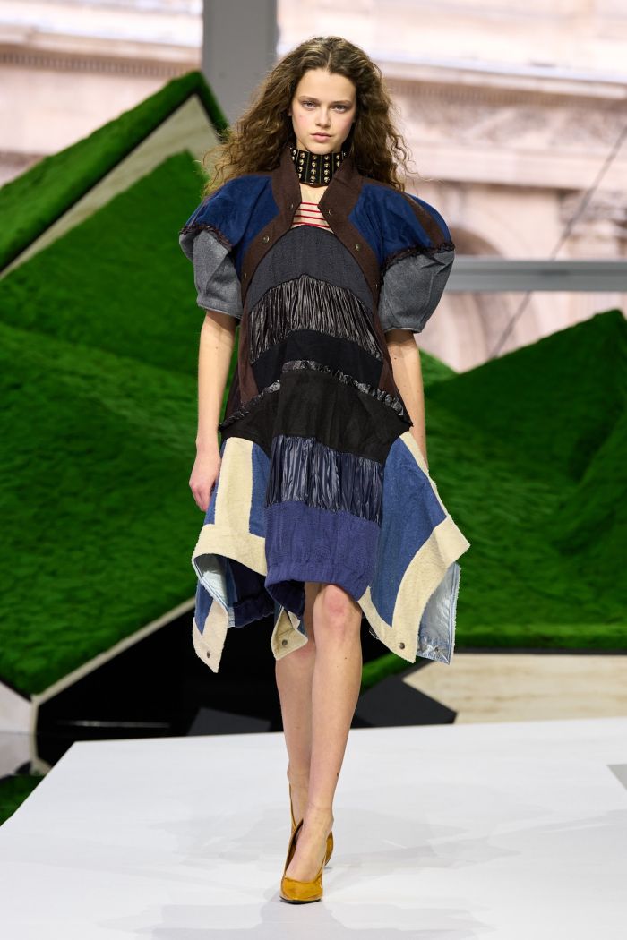 Η συλλογή Ready-to-Wear κινήθηκε σε ένα ιδιαίτερα πολυεπίπεδο αισθητικό σύμπαν. Τα looks εμφανίστηκαν σύνθετα, γεμάτα αντιθέσεις, πολλαπλές υφές, απροσδόκητοι συνδυασμοί χρωμάτων και έντονες γεωμετρίες στα σχήματα. Ο Ghesquière συνέθεσε outfits που μοιάζουν σχεδόν αρχιτεκτονικά, με layering που απαιτεί προσεκτική παρατήρηση. Είναι από εκείνες τις συλλογές που σε καλούν να σταθείς σε κάθε look ξεχωριστά, να το μελετήσεις και να ανακαλύψεις τις λεπτομέρειες που το κάνουν μοναδικό.