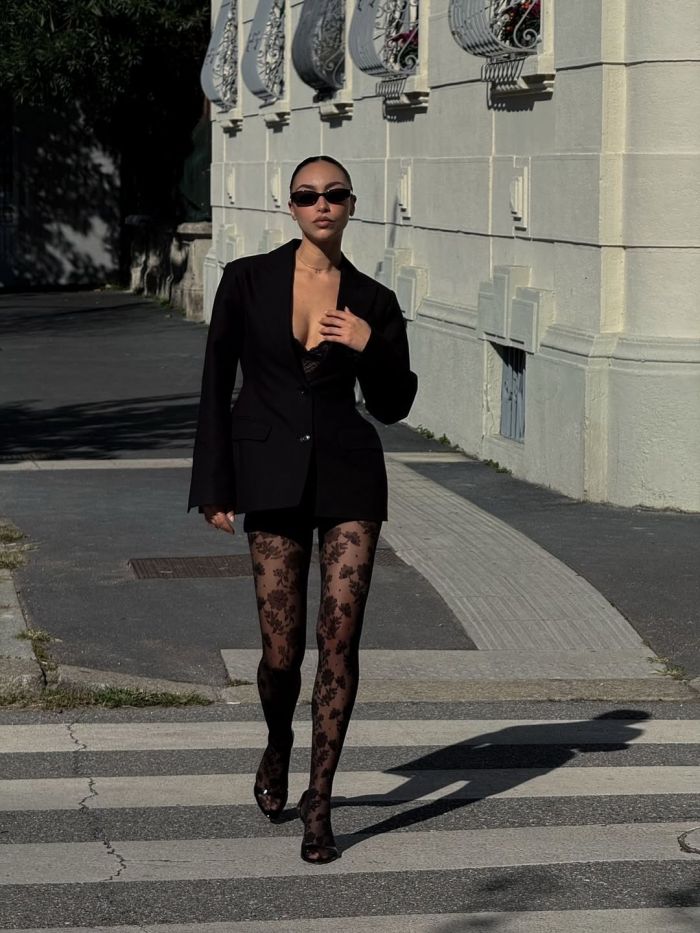 Αν φοβάσαι ότι το lace καλσόν μπορεί να δείχνει «βαρύ», κράτησε το υπόλοιπο look απλό. Καθαρές γραμμές, μονόχρωμα κομμάτια και minimal αξεσουάρ αφήνουν τα lace legs να πρωταγωνιστήσουν χωρίς υπερβολές. Επίλεξε σχέδια με λεπτά μοτίβα ή γεωμετρικές λεπτομέρειες αν θέλεις ένα πιο κομψό αποτέλεσμα, ενώ τα πιο έντονα floral σχέδια και χρώματα εκτός του μάυρου, είναι ιδανικά για βραδινές εξόδους και ρεβεγιόν.
