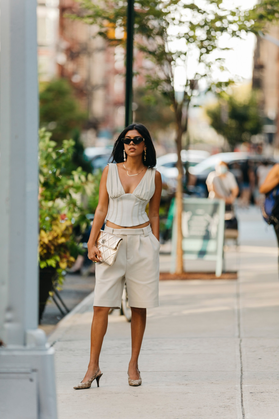 Τα crop tops και τα πουκάμισα είναι ίσως η πιο αναμενώμενη επιλογή για να συνδυάσουμε μία βεμρούδα. Αλλά αυτό δεν σημαίνει ότι πρέπει να μείνουμε μόνο εκεί. Τα corset tops και τα t-shirts με logo είναι μία ακόμη επιλογή, κάπως πιο διασκεδαστική και πρωτότυπη. Αν είσαι fan της απλότητας τότε το λευκό ή το μαύρο σου tank top, είναι η καλύτερη λύση για σένα. Οι ζώνες πάνε επίσης πολύ στις βερμούδες το ίδιο και τα γιλέκα αν θες να κάνεις ένα ανδρόγυνο look. Δες τα παρακάτω street style looks και πάρε έμπνευση.