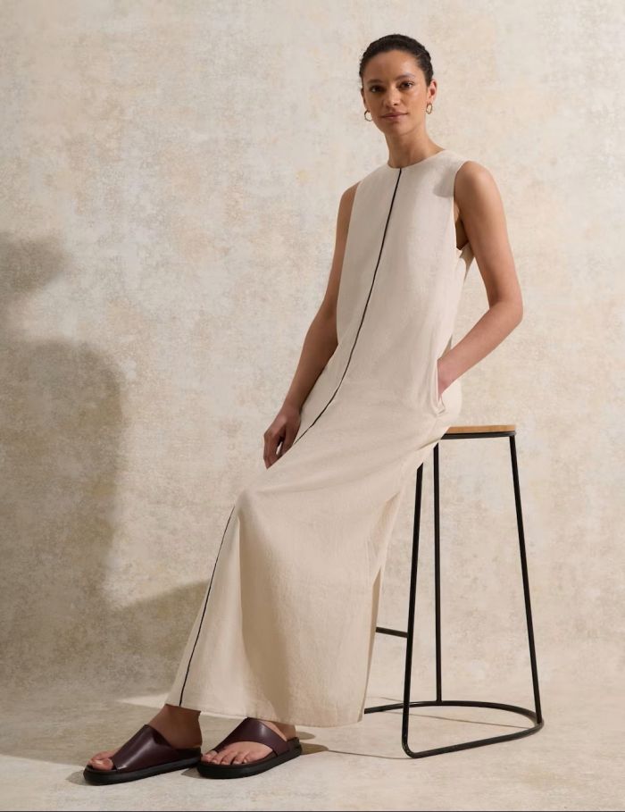 Το λινό είναι το ύφασμα του καλοκαιριού: Ένα λινό maxi φόρεμα σε relaxed γραμμή και ουδέτερες αποχρώσεις όπως μαύρο, μπλε ή χακί, είναι τέλειο για απογευματινές βόλτες ή δείπνο σε αυλή. Συνδύασέ το με μια μικρή τσάντα και mules ή σανδάλια με χαμηλό τακούνι.