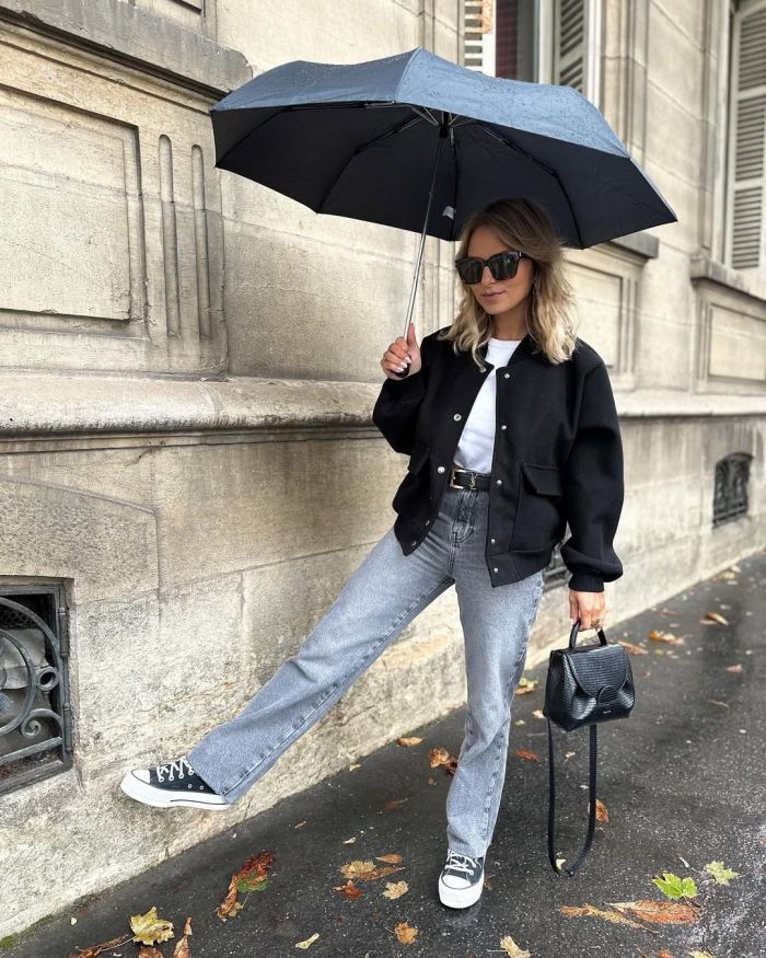 Πρόσθεσε μια ομπρέλα και μια μεγάλη tote τσάντα για να είσαι έτοιμη για τη μέρα με στυλ, είτε βρέξει, είτε όχι.