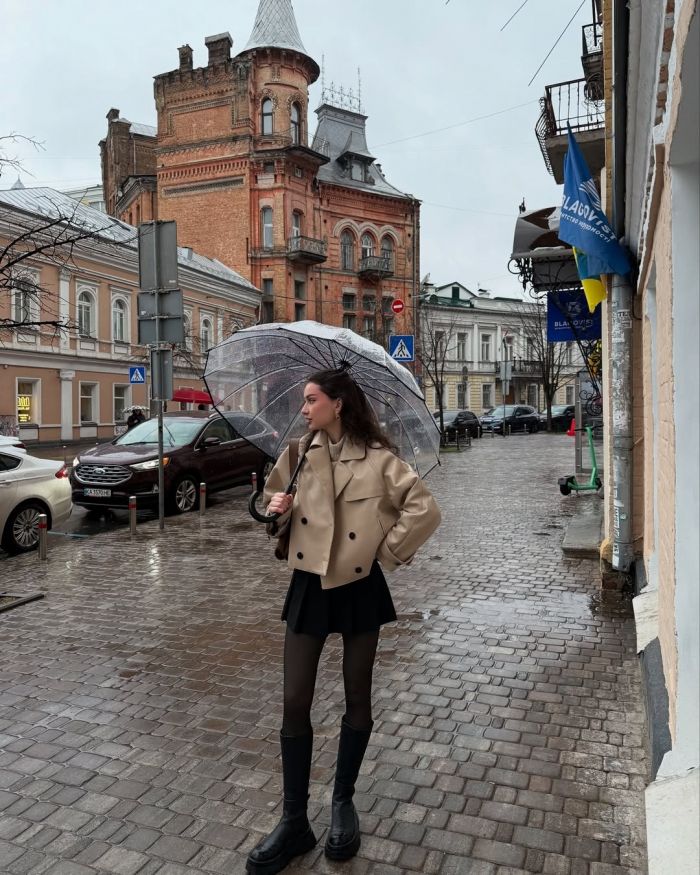 Fashion tip: Μην ξεχνάς τα μικρά πράγματα που κάνουν τη διαφορά: μια chic ομπρέλα, ένα ζευγάρι γάντια ή ένα καπέλο τύπου bucket μπορούν να απογειώσουν το rainy-day look σου και να σε κρατήσουν ακόμη πιο στενή και το look να παραμείνει ανθεκτικό.