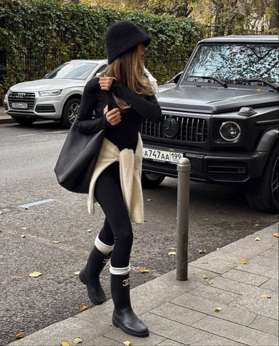 Style tip για πολύ βροχή: βάλε το παντελόνι μέσα στις μπότες, εκτός από πρακτικό, είναι και ένα styling trick που κάνει τα πόδια να δείχνουν πιο μακριά.