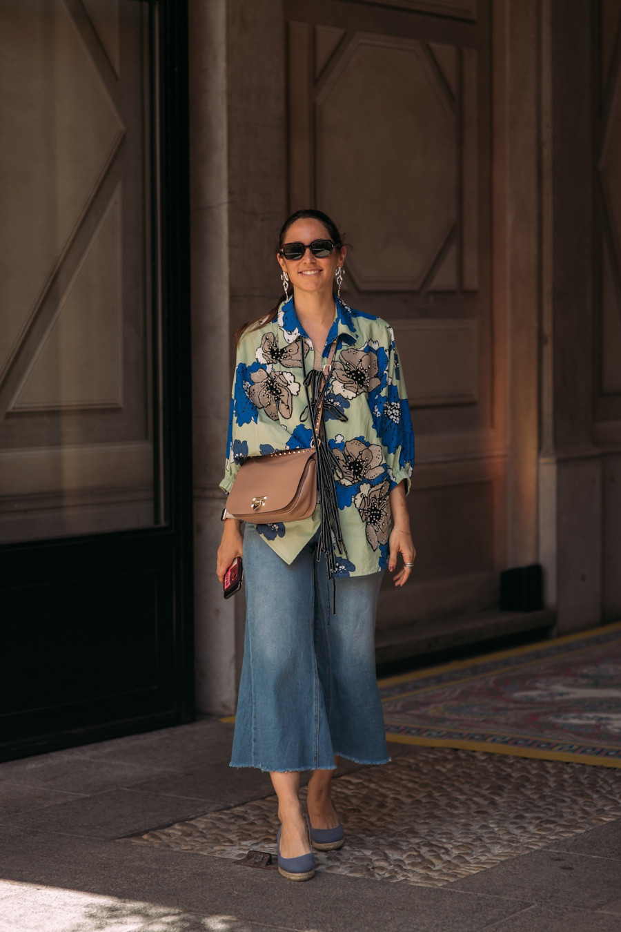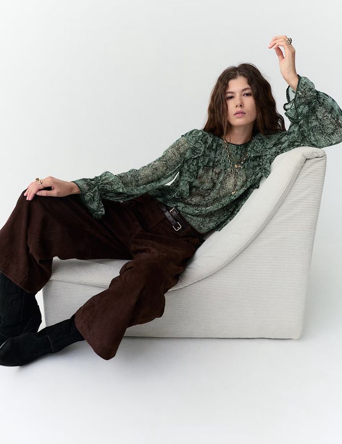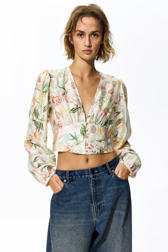 Άφησε το πουκάμισο να είναι ο πρωταγωνιστής. Συνδύασέ το με total black ή beige basics ώστε να ξεχωρίζει χωρίς να γίνεται υπερβολικό. Ιδανικό για όσες θέλουν να δοκιμάσουν τα floral prints με πιο safe τρόπο.