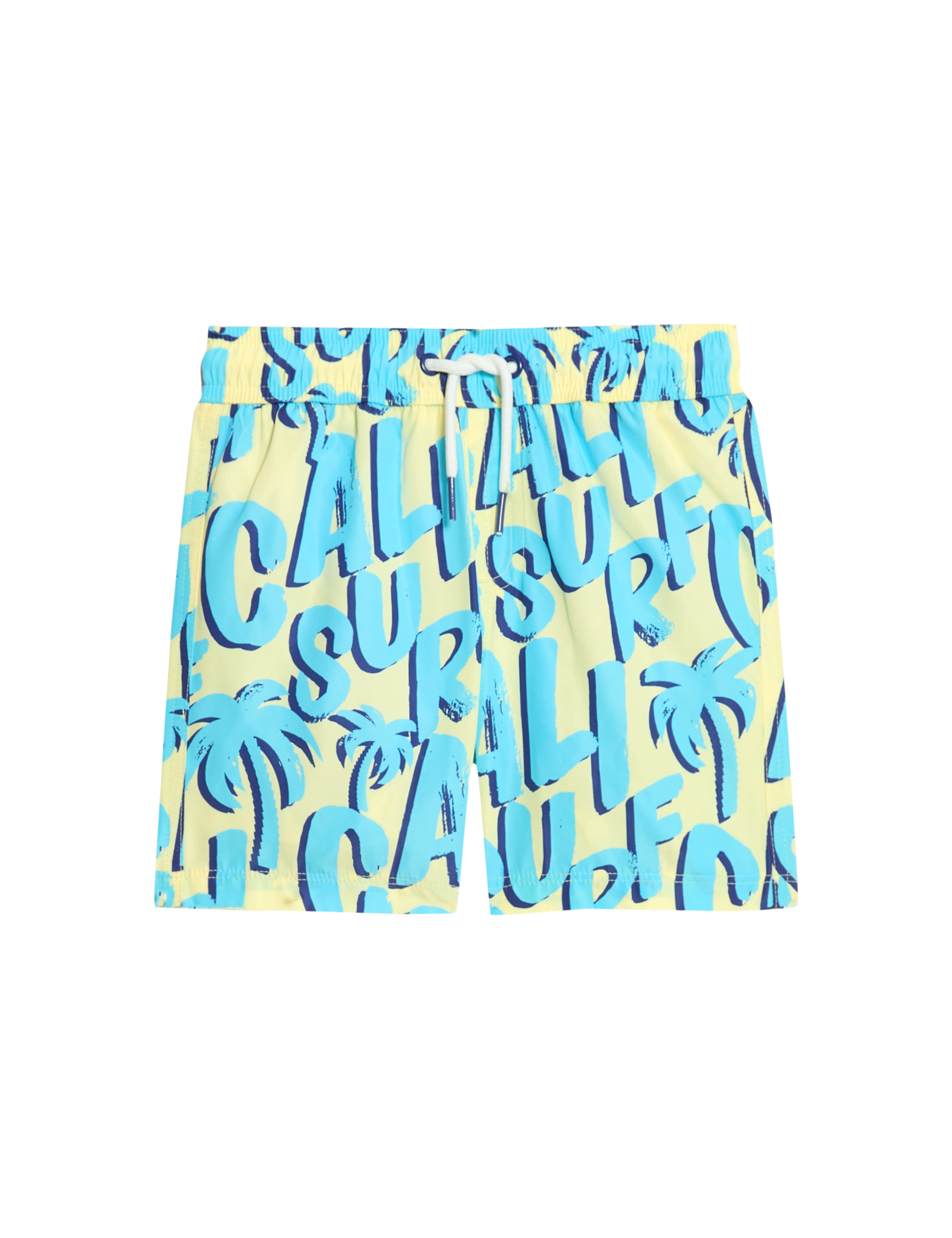 Έντονο μαγιό με slogan print "CALIFORNIA SURF", γεμάτο ενέργεια και παιχνιδιάρικο χαρακτήρα.