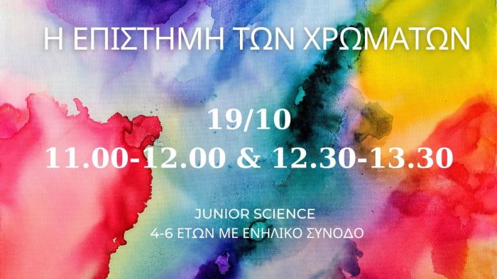Τα χρώματα ομορφαίνουν τη ζωή μας και μας φτιάχνουν τη διάθεση! Πώς όμως δημιουργούνται και τι μπορεί να κάνει ένας μικρός επιστήμονας με αυτά; Σε μία ακόμη Junior Science Κυριακή, οι μικροί θα βοηθήσουν τους μεγάλους όσο περισσότερο γίνεται και οι μεγάλοι τους μικρούς όσο λιγότερο γίνεται, ώστε να πετύχουν τα πιο πολύχρωμα πειράματα φυσικής, χημείας και βιολογίας. Ενώνουμε τα χρώματα και τα χωρίζουμε ξανά, τα παρατηρούμε μέσα από ένα μικροσκόπιο, ξεγελάμε τα μάτια και το μυαλό μας με οφθαλμαπάτες, ανακαλύπτουμε πόσα χρώματα κρύβει το λευκό φως και πολλά ακόμη πειράματα.