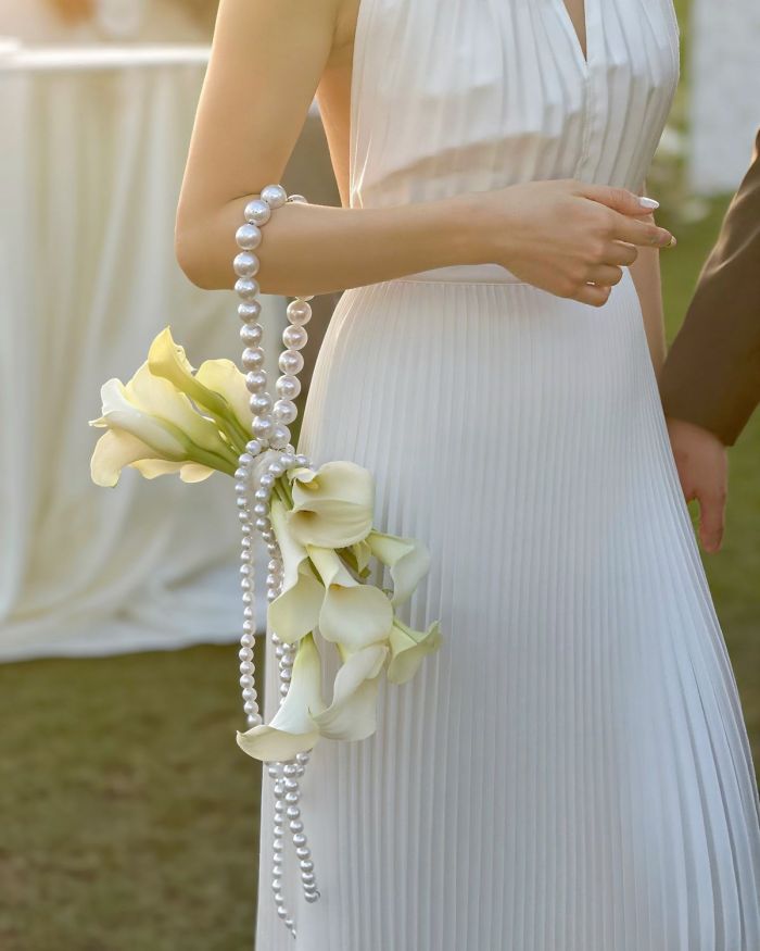 Το bouquet purse δεν είναι μόνο σούπερ Instagrammable, αλλά έχει και πρακτικά πλεονεκτήματα. Μπορείς να το κρατήσεις πιο εύκολα, δεν σε περιορίζει στις κινήσεις σου και - το καλύτερο - γίνεται αξεσουάρ που ολοκληρώνει το bridal look σου. Σκέψου το σαν fashion statement που παντρεύει την παράδοση με τη μόδα.