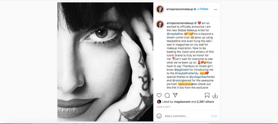 H ανακοίνωση της Εrin για τη συνεργασία της με τη Maybelline