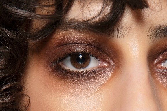Αυτό το εντυπωσιακό μακιγιάζ ματιών με μείγμα φυσικών καφέ σκιών ξεκινά με μια κρεμώδη ουδέτερη σκιά στην εσωτερική γωνία και τελειώνει μ’ ένα σκούρο σοκολατί στην εξωτερική γωνία. Το σκούρο καφέ αναμειγνύεται σ’ όλη την πτυχή.