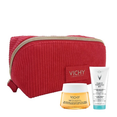 Για τις γυναίκες που βρίσκονται κατά τη διάρκεια της εμμηνόπαυσης, στα κόκκινα Xmas pouches μπορείτε να βρείτε τη Neovadiol Κρέμα Ημέρας Ενίσχυσης Πυκνότητας & Εφε Lifting που δρα ενάντια στην απώλεια πυκνότητας και τις ρυτίδες. Για τις γυναίκες που βρίσκονται μετά την εμμηνόπαυση, στα κόκκινα Xmas pouches μπορείτε να βρείτε τη Neovadiol Κρέμα Ημέρας Αναπλήρωσης Λιπιδίων κατά της Χαλάρωσης που επανενεργοποιεί τους μηχανισμούς της επιδερμίδας ενάντια στην απώλεια ελαστικότητας, σφριγηλότητας και ξηρότητας.
