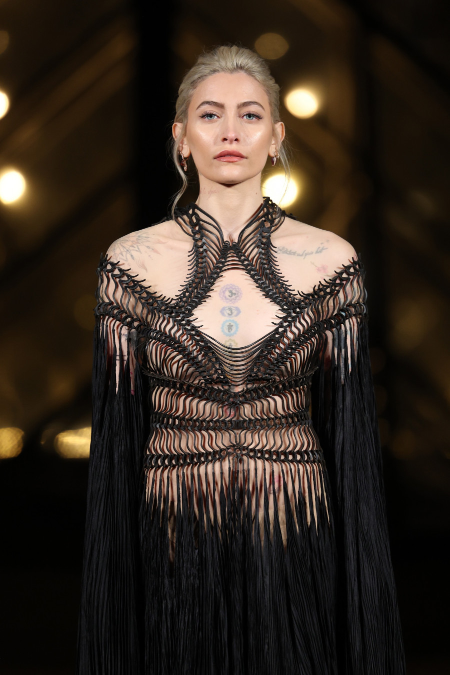 2025 Getty ImagesΤο πασίγνωστο μοντέλο Gigi Hadid, φόρεσε ένα εκθαμβωτικό ασύμμετρο φόρεμα που ταίριαζε τέλεια με την περίφημη πυραμίδα του Λούβρου. Το χρυσό φόρεμα είχε ασημένιες μεταλλικές και χρυσές λεπτομέρειες με ένα μόνο μανίκι που έπεφτε στον ώμο. Το vintage flipped bob της και η λαμπερή επιδερμίδα της ολοκλήρωναν το look και έκαναν την εμφάνιση να θυμίζει την Old Hollywood αισθητική.