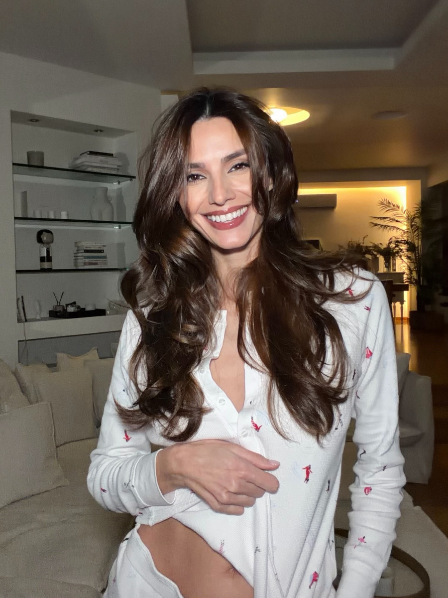 Η beauty ρουτίνα της ολοκληρώνεται με έμφαση στα μαλλιά. Λίγες σταγόνες από λάδι μαλλιών χαρίζουν άμεση λάμψη και θρέψη, ενώ το curly χτένισμα προσθέτει κίνηση και όγκο. Το αποτέλεσμα είναι μαλλιά που δείχνουν πιο πλούσια, υγιή και πυκνά, χωρίς υπερβολικό styling.