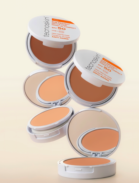 Ψάχνοντας, λοιπόν, ένα έξυπνο προϊόν που να συνδυάζει την αντηλιακή κάλυψη με την καλλυντική περιποίηση ανακάλυψα το Sun Protect Mattifying Make-Up Compact SPF 50 της Tecnoskin. Το καλύτερο είναι η σύνθεσή του. Μια αντηλιακή κρέμα υψηλής προστασίας σε μορφή compact make-up με αντιγηραντικά συστατικά, που προσφέρει ματ αποτέλεσμα, ομοιόμορφο χρωματικό τόνο και προστατεύει από τη φωτογήρανση, έχει όλα τα green flags που αναζητούσα!