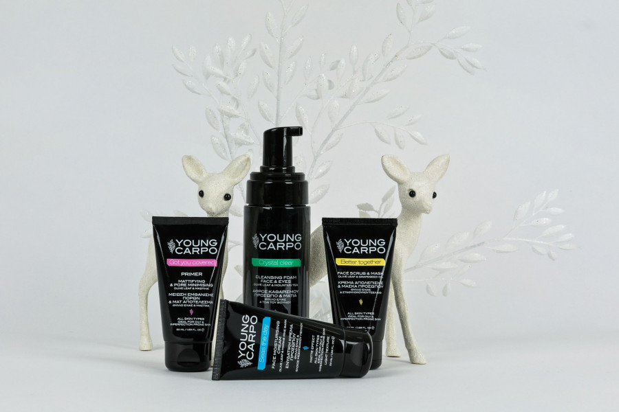 Όλα τα προϊόντα Young Carpo βλέπεις, είναι cruelty free, vegan και sustainable τόσο όσον αφορά στο packaging όσο και στις πρακτικές παραγωγής τους. Γιατί λοιπόν να κάνεις τη ζωή σου πολύπλοκη χωρίς λόγο; Απλοποίησέ τη, δώσε στην επιδερμίδα σου αυτό που πραγματικά έχει ανάγκη και μοιράσου την περιποίηση με τους φίλους σου… είναι το τέλειο Xmas Present!