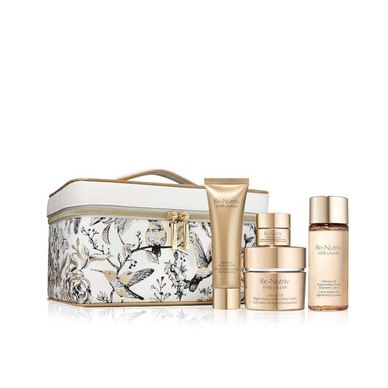 Το σετ περιέχει: Μία Re-Nutriv Ultimate Lift Regenerating Youth Creme, σε κανονικό μέγεθος. Μία Re-Nutriv Ultimate Lift Regenerating Youth Eye Creme, σε ειδικό μέγεθος. Ένα Re-Nutriv Hydrating Foam Cleanser, σε ειδικό μέγεθος. Μία Re-Nutriv Ultimate Lift Regenerating Youth Treatment Lotion, σε ειδικό μέγεθος. Όλα είναι κλεισμένα μέσα σε ένα πολυτελές νεσεσέρ.