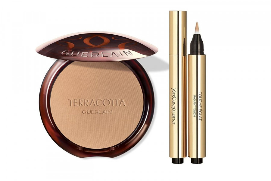 Πριν τον αποδεσμεύσω, δεν μπορούσα να μην τον ρωτήσω ποια είναι τα προϊόντα που δεν λείπουν ποτέ από το νεσεσέρ του και μου τα αποκάλυψε όλα. Αρχικά, από το κιτ του Μάνου δεν λείπει ένα bronzer (αγαπημένο είναι το Guerlain, Terracotta The Bronzing Powder στην απόχρωση Light Warm) και το YSL, Touche Éclat.