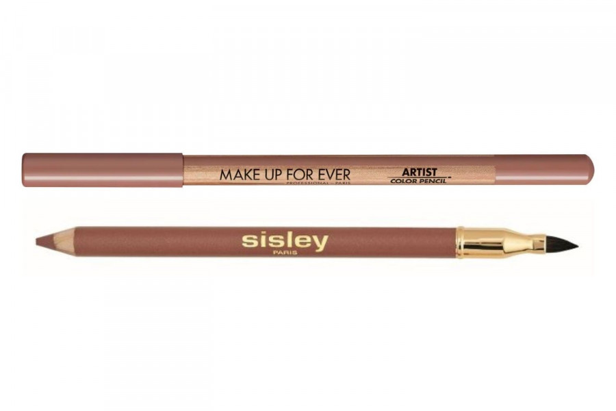 Προχωράμε με τα μολύβια χειλιών. Σύμφωνα με τον Μάνο, πρέπει να τα φοράς σε όλη την επιφάνεια των χειλιών για να δημιουργείς μία τέλεια βάση. Τα αγαπημένα του είναι το Μake Up Forever, Artist Color Pencil στην απόχρωση Completely Sepia (πάνω) και το Sisley, Phyto-Lèvres Perfect Lip Pencil στην απόχρωση Beige Naturel (κάτω).