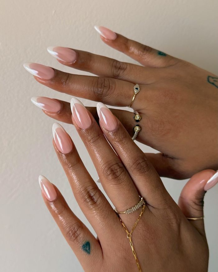 Αν θέλεις να το δοκιμάσεις μόνη σου, μπορείς να χρησιμοποιήσεις ένα pearly top coat ή ένα πολύ διακριτικό chrome powder πάνω από έτοιμο French.