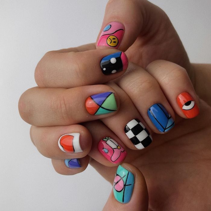 Και στην παρακάτω gallery θα βρεις όχι ένα, αλλά 10 μανικιούρ για κοντά νύχια με τα πιο περίτεχνα σχέδια. Με γεωμετρικά prints συνδυασμένα με έντονα χρώματα, με αφηρημένα σχέδια, με ασυνήθιστους συνδυασμούς χρωμάτων, που όμως έχουν μια μοναδική ταυτότητα, την οποία θα χαρίσουν σε εσένα.