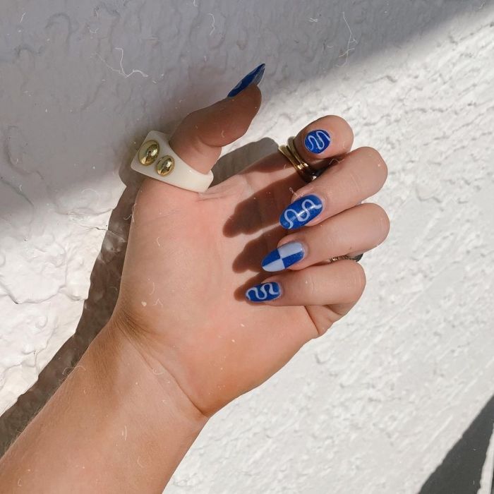 Οι nail experts στο TikTok και στο Instagram, καθημερινά δείχνουν τα πιο σύγχρονα σχέδια, με λουλούδια, ματάκια, καρδούλες και ότι μπορείς να φανταστείς, με τα οποία μπορείς να εμπνευστείς και εσύ. Το μήκος που θα επιλέξεις δεν παίζει κανένα ρόλο, γιατί το μπλε χρώμα θα είναι ο απόλυτος πρωταγωνιστής στα χέρια σου. Ακόμη και μικρά νύχια να έχεις, μη στεναχωριέσαι… Το μπλε χρώμα θα αναδείξει τα άκρα σου με τον πιο όμορφο τρόπο.