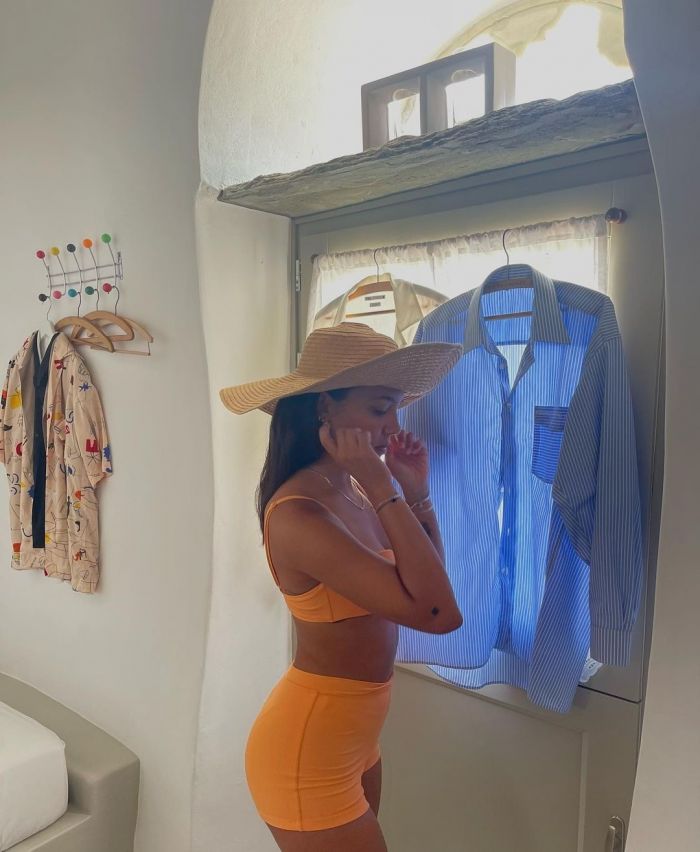 Στην παρακάτω gallery θα τη δεις σε καλοκαιρινό mood να δένει με κόμπο το πουκάμισο της κάτω από το στήθος ή στη μέση και να δημιουργεί έτσι ένα τέλειο crop top! Αντέγραψε τα σύνολά της off we go for the beach!