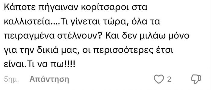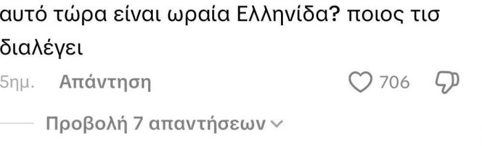 Και εκεί ακριβώς βρίσκεται το παράδοξο: αντί να συζητάμε για την παρουσία της και τη διεθνή ελληνική εκπροσώπηση, μιλάμε για το αν «ταιριάζει» στα standards κάποιων χρηστών του διαδικτύου. Σχόλια που αφορούν τις αισθητικές επεμβάσεις, το ύψος της, τα δόντια της γέμισαν το επίσημο βίντεο από τη διοργάνωση.