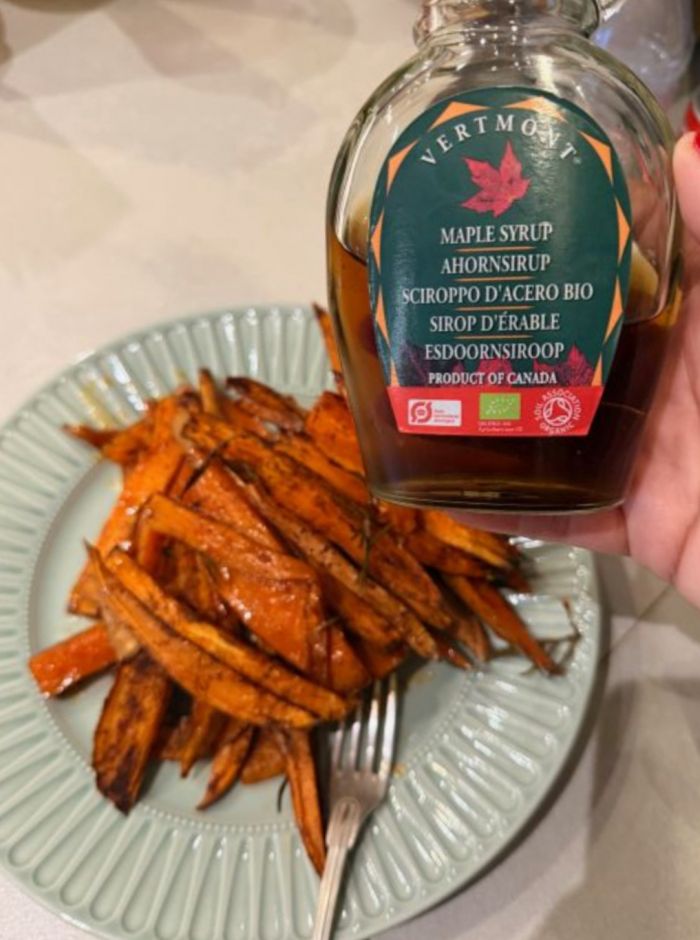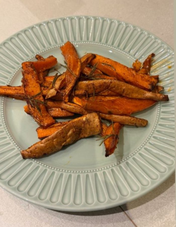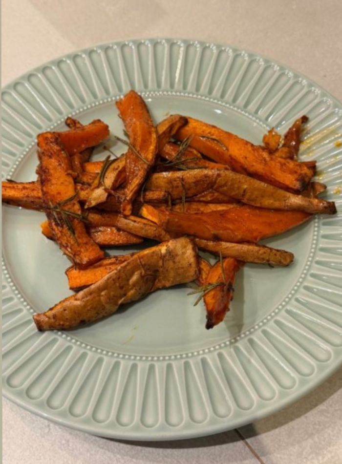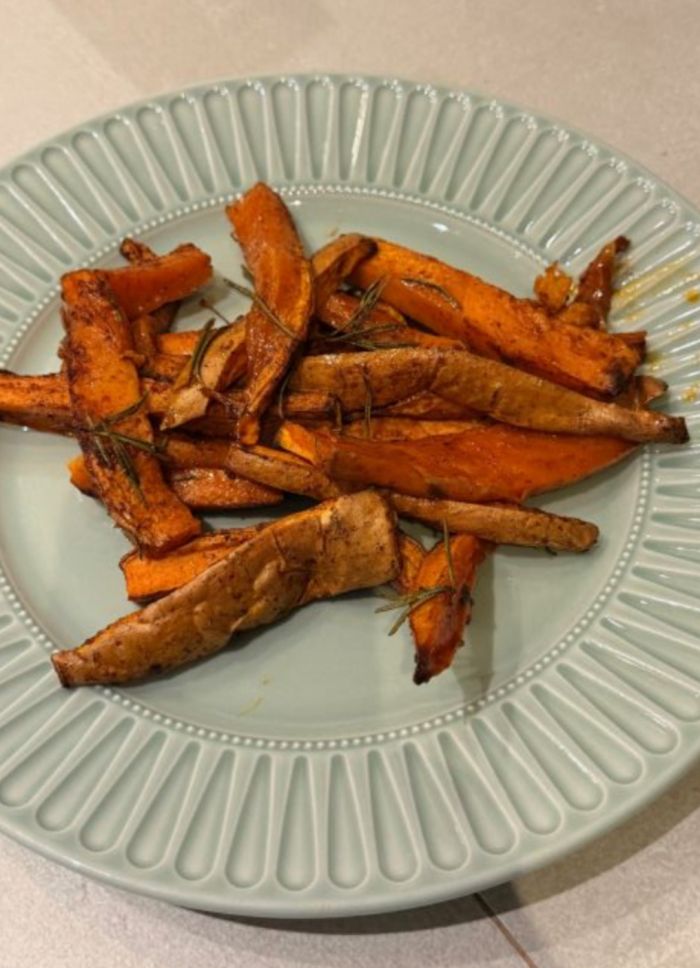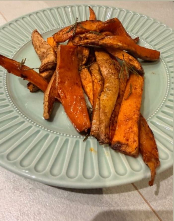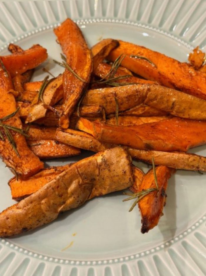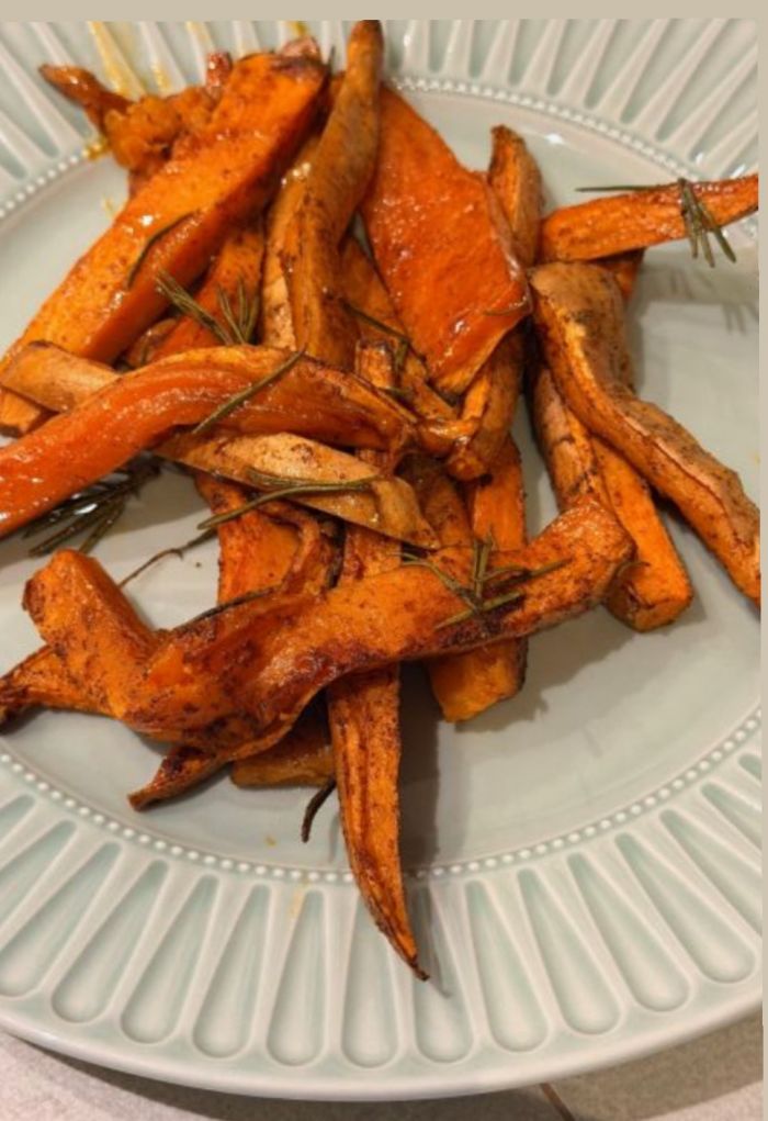 Γιορτινές γλυκοπατάτες με σιρόπι σφενδάμου, πάπρικα, κανέλα & δεντρολίβανο