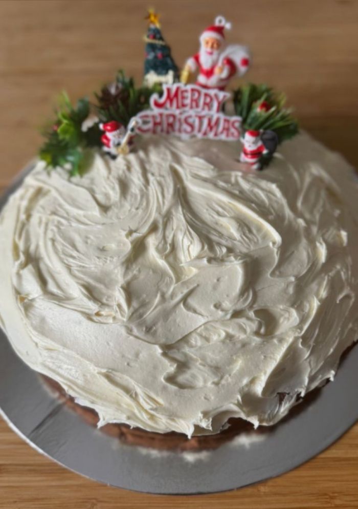 Αυτή η συνταγή είναι η απόλυτη βασιλόπιτα κέικ: αφράτη, βουτυράτη, γεμάτη άρωμα πορτοκαλιού, μαχλεπιού και μαστίχας, με βελούδινο vanilla frosting που την απογειώνει.
