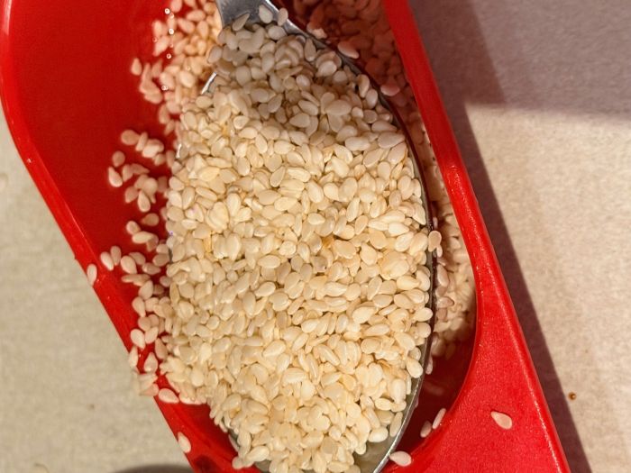 - Ανακατεύουμε τη σάλτσα σόγιας, το νερό, τη ζάχαρη, το σκόρδο, τα φρέσκα κρεμμυδάκια, την πιπεριά, το σησαμέλαιο και το σουσάμι.