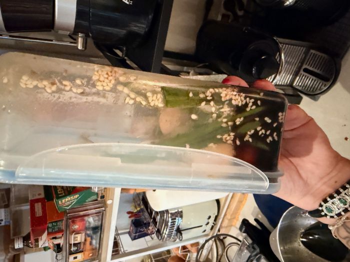 - Βάζουμε τα καθαρισμένα αυγά σε δοχείο που να έχει καπάκι