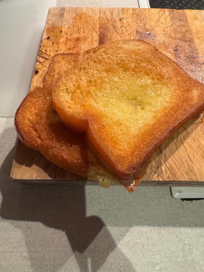 • 4 φέτες πολύ μαλακό λευκό ψωμί (τύπου τοστ χρησιμοποίησα Brioche)