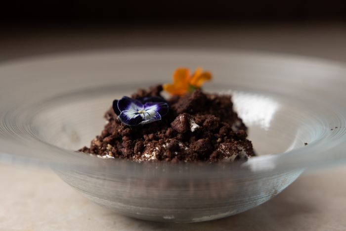 Μετά όμως, και αφού ορκιζόμασταν πως δεν θα φάμε τίποτα ακόμη, ήρθε το διάσημο signature Banoffee Barbarossa και καταλάβαμε αμέσως γιατί είναι διάσημο και signature. Μπορεί να μην είναι όσο φωτογενές είναι το προηγούμενο και σίγουρα όχι όσο το επόμενο επιδόρπιο, όμως αποτελεί ένα από τα καλύτερα desserts που έχουμε δοκιμάσει τις τελευταίες σεζόν. Crumble αμυγδάλου, πραλίνα φουντουκιού, καραμέλα βουτύρου, μπανάνα, σαντιγί, βούτυρο και ειλικρινά δεν μπορούμε να περιγράψουμε κάτι περισσότερο, πρέπει να το δοκιμάσετε.