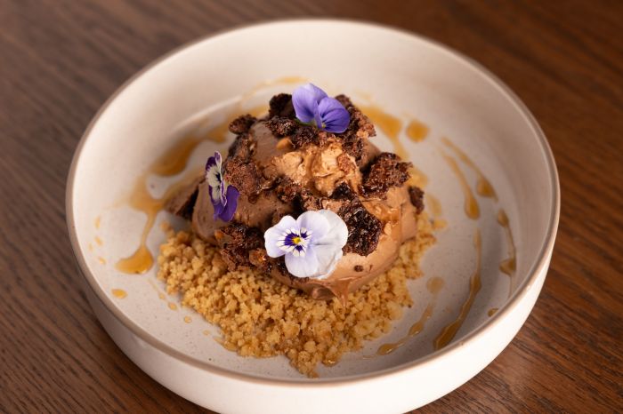 Φυσικά και δεν μπορούσαμε παρά να κλείσουμε με ένα κολασμένο γλυκό, όπως η Αλμυρή μαύρη σοκολάτα με τρείς διαφορετικές υφές από μαύρη σοκολάτα, μαρέγκα από μύρτιλα, μπισκότα βουτύρου και σπιτικό παγωτό σοκολάτα.