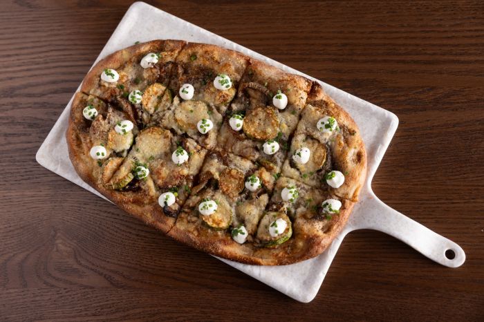 Συνεχίσαμε με την κομψή Burrata σαλάτα, που εδώ αποτελεί ζεστό πιάτο, με τα τοματίνια να ψήνονται και να συνοδεύονται από ένα κομψό dressing ντομάτας, λάδι ρίγανης και θυμάρι, ενώ ένα δυνατό πιάτο, ιδανικό για να συνοδεύσει κανείς το ποτό ή το κρασί του, είναι η Pinsa truffle zucchini με βούτυρο τρούφας, κολοκύθι, κρεμμύδι, παρμεζάνα και κρέμα τυρί.