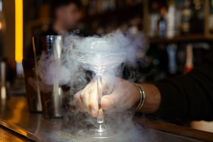 Για τους bourbon fans το Boy Craves Honey είναι ένα στιβαρό cocktail με μεστή και πολυεπίπεδη γεύση -και άκρως εντυπωσιακή παρουσίαση- με bourbon, μελισσοκέρι, μέλι και ξηρό sherry.