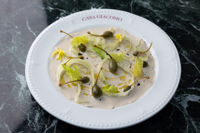 Το διάσημο Vitello tonnato με τέλεια κομμένο carpaccio από μοσχάρι γάλακτος και πληθωρική κρέμα τόνου κερδίζει στα σημεία, ενώ η ολόκληρη φρέσκια κάπαρη δίνει αυτό το κάτι που κάνει τη διαφορά.