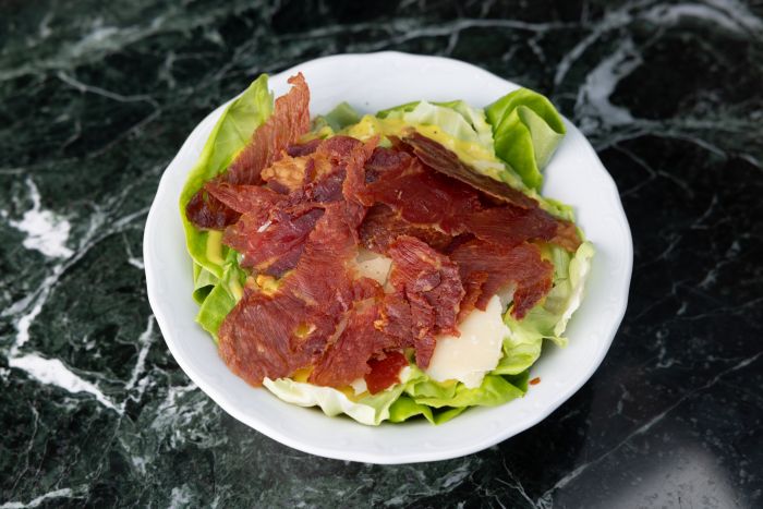 Η καταπράσινη και ολόφρεσκη σαλάτα Lattuga με τραγανό προσούτο Πάρμας, καρδιές μαρουλιού, καβουρδισμένο κουκουνάρι, flakes παρμεζάνας και μία μεστή vinaigrette μουστάρδας αποτελεί την ιδανική εισαγωγή για να περάσουμε στα λαχταριστά ορεκτικά.