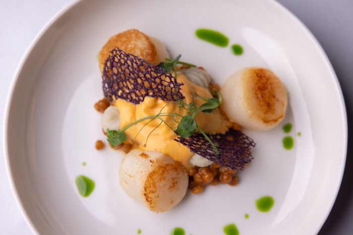 Πολύ δημοφιλές πιάτο αποτελούν τα Χτένια με fregola pasta, bisque αστακού και φινόκιο, με το μικροσκοπικό ζυμαρικό να έχει βράσει τέλεια και να έχει κρατήσει όλη τη νοστιμιά του αστακού.