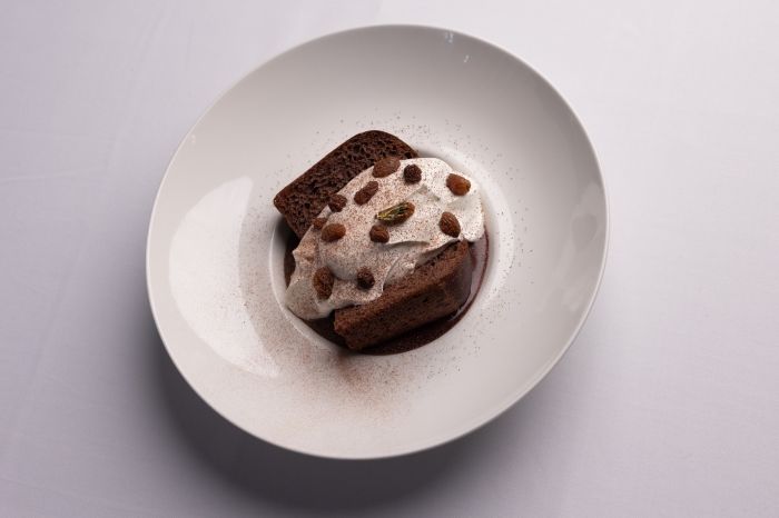 Κλείσαμε με έναν κολασμένο Baba σοκολάτας με κακάο και σταφίδες εμποτισμένες σε παλαιωμένη τσικουδιά, που αποτελεί μία πολύ έξυπνη παραλλαγή του κλασσικού Baba au Rum, βάζοντας στο παιχνίδι το ελληνικό στοιχείο και κλείνοντας το μάτι στους ορκισμένους choco lovers της πόλης. Να σημειώσουμε πως πολύ πρόσφατα το Atelier Papaioannou ξεκίνησε μία συναρπαστική συνεργασία με τον πολυβραβευμένο pastry chef Δημήτρη Χρονόπουλο στο κομμάτι των desserts!