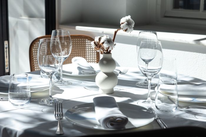 Οι εσωτερικοί χώροι με την εξαιρετικά κομψή τους διακόσμηση προσκαλούν τους επισκέπτες τόσο για lunch όσο και για dinner, ενώ σιγά σιγά όσο ανεβαίνει η θερμοκρασία η «δράση» μεταφέρεται και στις δύο πανέμορφες εξωτερικές αυλές, που αναμένεται να γίνουν το απόλυτο σημείο συνάντησης αυτό το καλοκαίρι.
