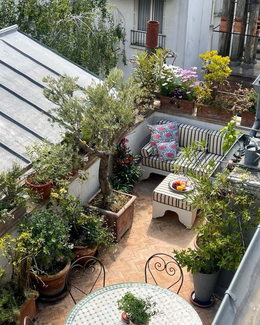 Η Damas, δημιουργός της φίρμας Rouje, έγκυος αυτή τη στιγμή στο δεύτερο παιδί της- έχει έναν γιο ακόμα- μπορεί να μην βρήκε υπαίθριο κήπο, αλλά η βεράντα την αποζημίωσε: