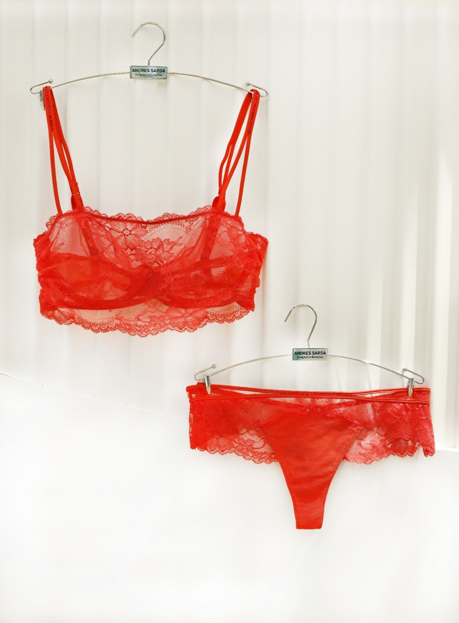 Μία ημέρα, όπως την 14 Φεβρουαρίου, που όλες ξέρουμε πως η θηλυκότητα είναι σε πρώτο πλάνο, προγραμματίζουμε να πειραματιστούμε με τα items εκείνα που θα ανανεώσουν την εικόνα μας και εξωτερικά και… εσωτερικά και θα μας κάνουν να νιώσουμε πιο δυναμικές από ποτέ. Ξεκινώντας, λοιπόν, με το εσωτερικό κομμάτι, ένα σετ εσώρουχα ANDRES SARDA με δαντέλα και λεπτομέρειες Swarovski από το κατάστημα Elegance, θα απογειώσει την αυτοπεποίθησή σου.