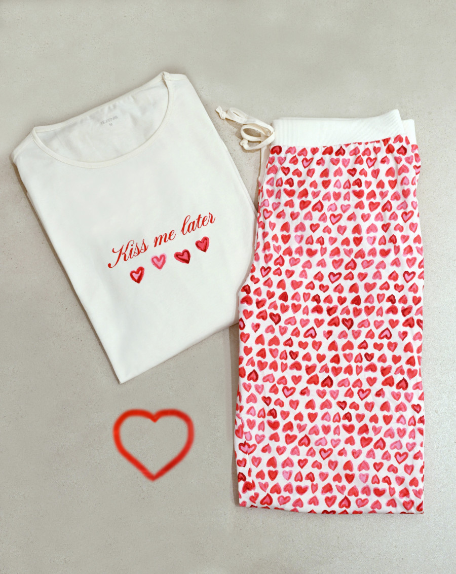 Όλα καλά με το ρομαντικό δείπνο που θα βγεις με το αγόρι σου, αλλά πιστεύεις ότι για εκείνο το «Kiss me later» που θα του υποσχεθείς, είσαι προετοιμασμένη; Επιλέγοντας το βαμβακερό μακρύ παντελόνι με καρδούλες και τη βαμβακερή μακρυμάνικη μπλούζα με print από το κατάστημα Tezenis, θα μπεις στο mood με τον πιο cute τρόπο.