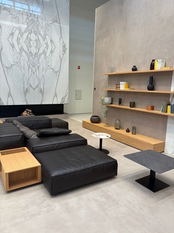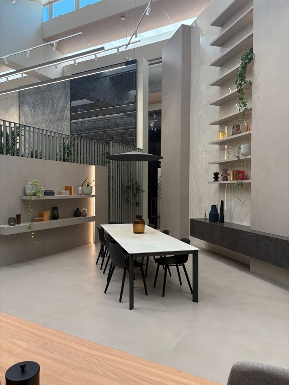 Από την ξενάγηση στο Fiorano, θα πούμε με βεβαιότητα πως το showroom δεν λειτουργεί ως χώρος πώλησης, αλλά ως επιμελημένο αφήγημα. Κάθε επιφάνεια, κάθε κεραμικό, κάθε οπτικό πεδίο, υπάγεται σε μια ενορχηστρωμένη σύνθεση μεταξύ ύλης, φωτός και χρωματικής παλέτας. Τα συστήματα φωτισμού, οι μεγάλες επιφάνειες τύπου Boost Balance, οι natural-inspired συλλογές με υφές τσιμέντου, πέτρας και ξύλου, οργανώνουν μια ενιαία αισθητική αφήγηση που μετατρέπει την industrial επιφάνεια σε βιωματικό χώρο.