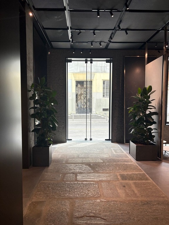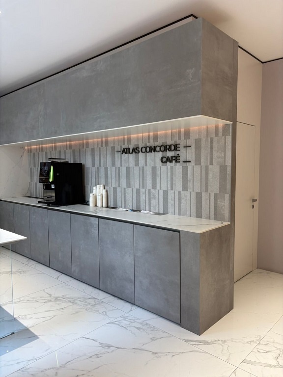 Η μετάβαση στο Atlas Concorde Studio, στο Brera του Μιλάνου, την επομένη της αποστολής, επανέφερε την ύλη στο καθημερινό πλαίσιο του αστικού σχεδιασμού. Σε κάθε σημείο και λεπτομέρεια, γίνεται σαφές πως το interior αποκτά το βλέμμα του εξωτερικού κόσμου -φως, θόρυβος, σιωπή και απλότητα συνυπάρχουν ως σχεδιαστικές παράμετροι. Οι επιφάνειες που παρουσιάζονται δεν είναι απλώς υλικά. Είναι τρόποι ζωής. Concrete, terrazzo, ματ μέταλλα, rustic wood και γυάλινες συνθέσεις δίνουν μορφή σε μια νέα ηθική του σύγχρονου design: διακριτική, ακριβής, απαλλαγμένη από τον θόρυβο της υπερπληροφόρησης.