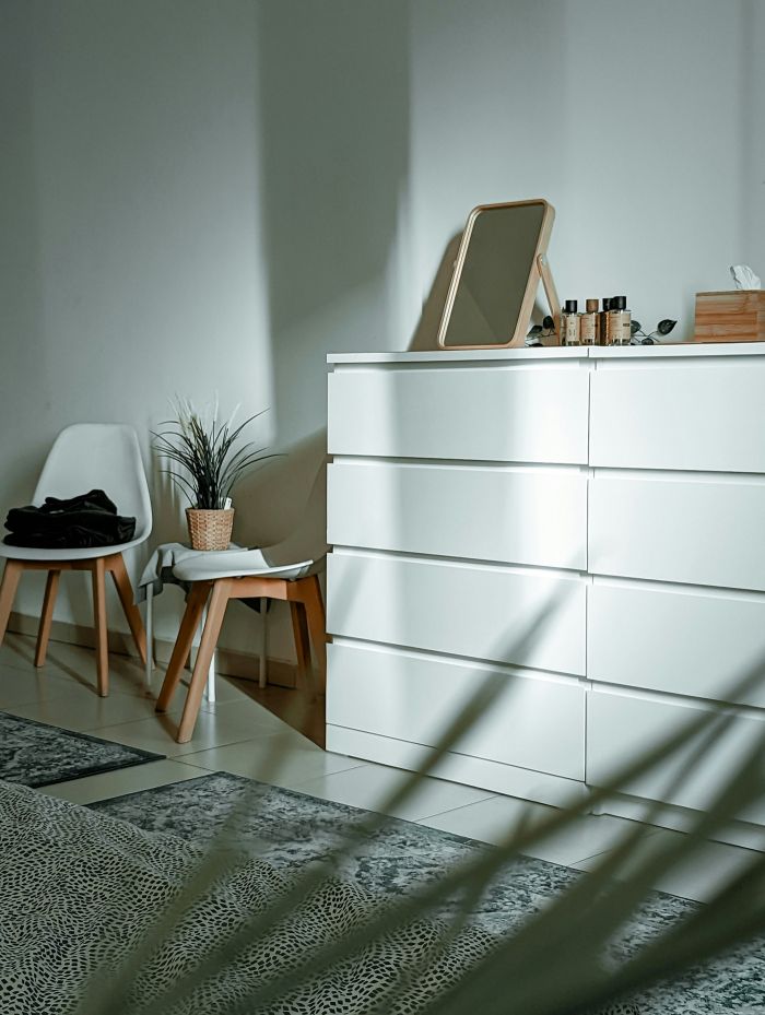 Αναβάθμισε τη συρταριέρα Malm προσθέτοντας καθρέφτες ή σχέδια στα μπροστινά συρτάρια. Αλλάζοντας τα πομολάκια με πιο elegant επιλογές, δημιουργείς μια κομψή, προσωπική πινελιά για την κρεβατοκάμαρά σου.