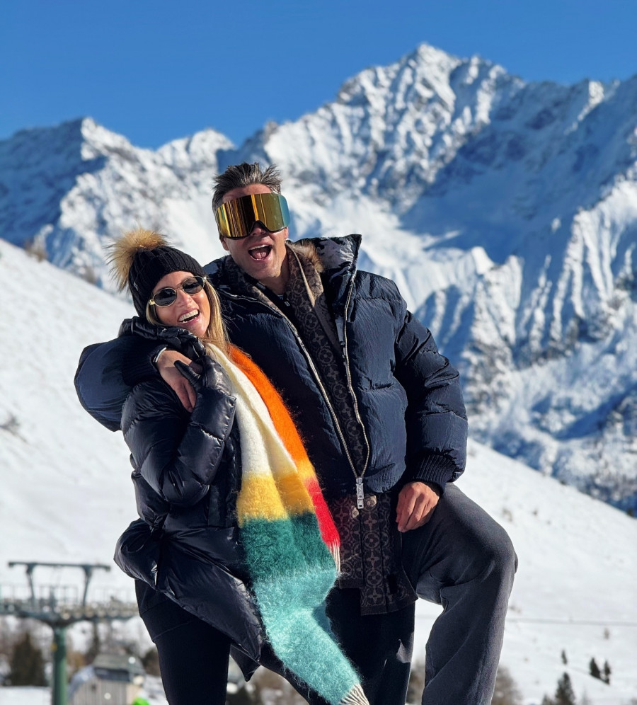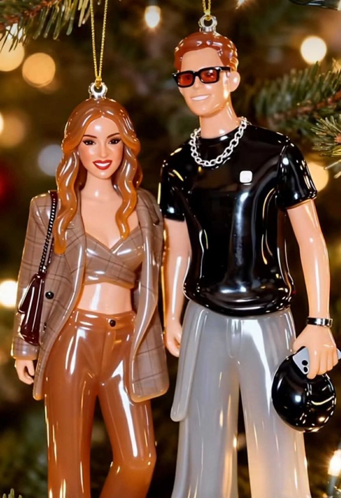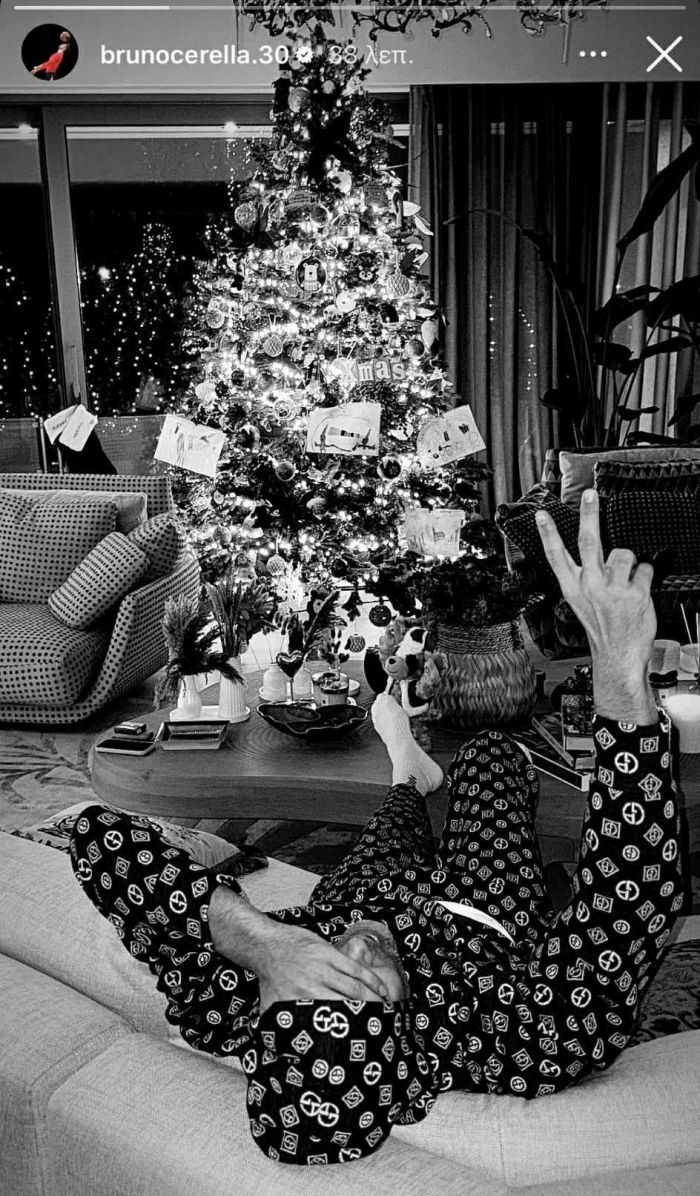 Στη διακόσμηση κυριαρχούν οι γήινες αποχρώσεις. Οι καμπύλες στους καναπέδες με τα ιδιαίτερα prints, το statement ξύλινο coffee table σε ελεύθερο σχήμα και ο εντυπωσιακός κρυστάλλινος πολυέλαιος που δεσπόζει πάνω από τον χώρο, δημιουργούν μια ατμόσφαιρα που ισορροπεί ανάμεσα στην πολυτέλεια και την οικειότητα. Φέτος, το χριστουγεννιάτικο δέντρο γίνεται το κέντρο της οικογενειακής ζωής, με μια custom-made λεπτομέρεια: δύο φιγούρες που απεικονίζουν την ίδια και τον Bruno, προσθέτοντας μια νότα σύγχρονου ρομαντισμού.